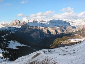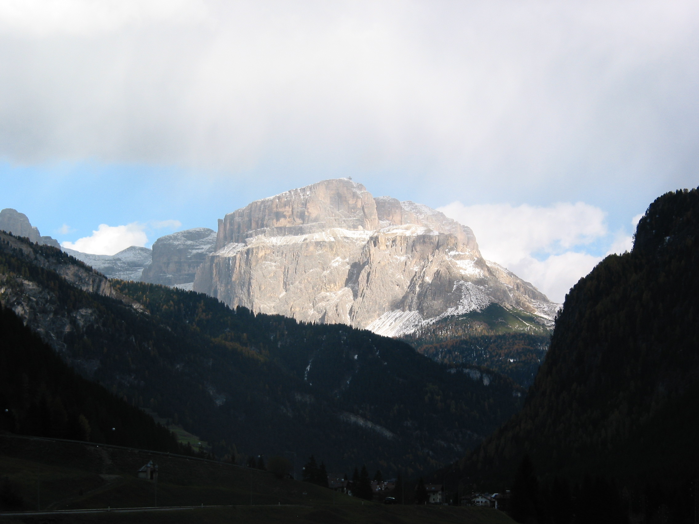 Rechts - die Sella Gruppe - mächtig gewaltig Egon - hier gabs auch den ersten Schnee auf die Scheibe... Weiter genings dann zum Sella Joch. |